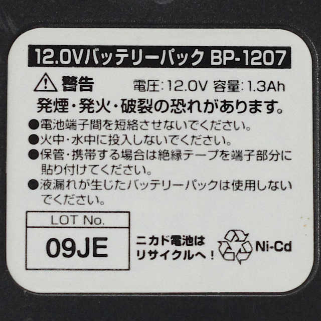 純正電圧: 12V / 純正容量: 1.3Ah (Ni-Cd)