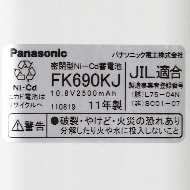[FK690KJ]Panasonic パナソニック ナショナル 非常灯電池 産業用照明 誘導非常灯 住設警報機器 バッテリーセル交換