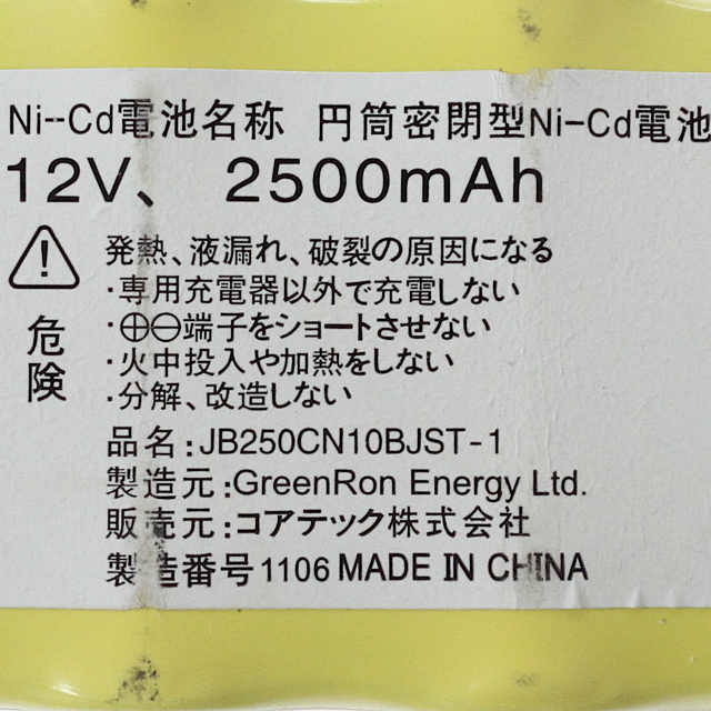 純正電圧: 12V / 純正容量: 2500mAh (Ni-Cd)