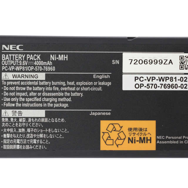 [PC-VP-WP81/OP-570-76960 PC-VP-WP81-02/OP-570-76960-02]NEC LaVie L シリーズ 他 Ni-MH バッテリーセル交換